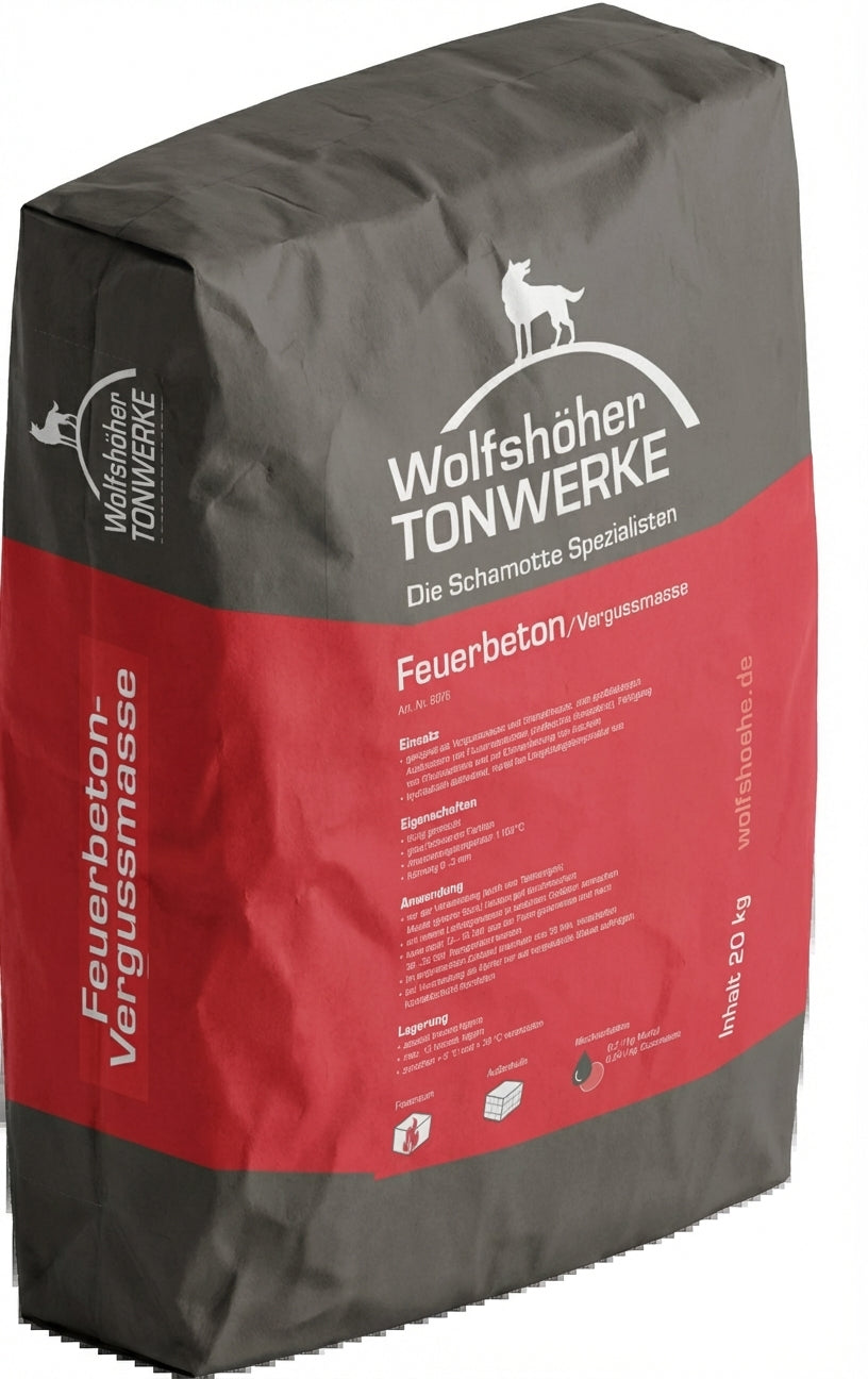 Der Feuerbeton stammt von den Wolfshöher Tonwerken, diese sind Spezialisten für feuerfeste Produkte seit über 160 Jahren. Seit 2020 werden in der Misch- und Absackhalle auf 900 m² feuerfeste Mörtel, Feuerbeton sowie Ofenputze für den Ofenbau nach eigenen Rezepturen abgefüllt. Mit den hauseigenen Labors und der Kontrolle durch externe Stellen wird dort höchste Qualität sichergestellt.