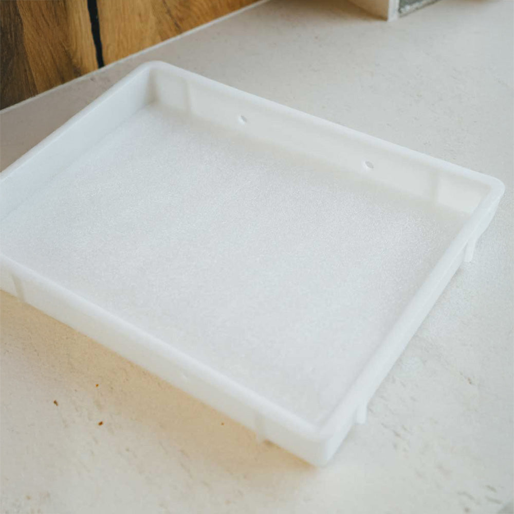 Der Gärbox-Einleger ist eine passgenaue Einlage aus Schaumfolie für deine Gärbox bzw. Pizzaballenbox. Du legst ihn einfach in die Box, bestäubst ihn leicht mit Mehl – und schon kleben Brötchen-Teiglinge oder Pizzaballen deutlich weniger am Boden fest. Das spart Nerven beim Ausheben und hält die Box länger sauber.