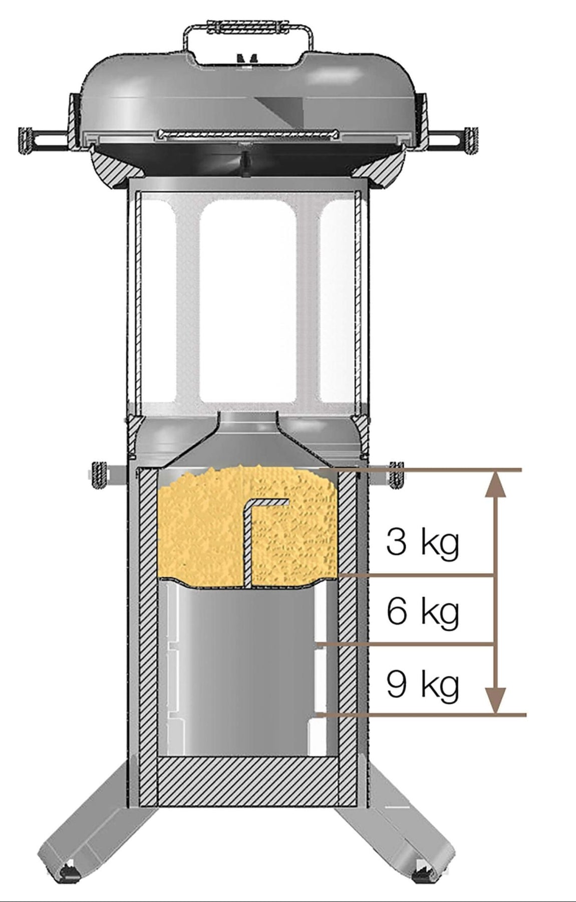 • Füllmenge: max. 9 kg Holzpellets
