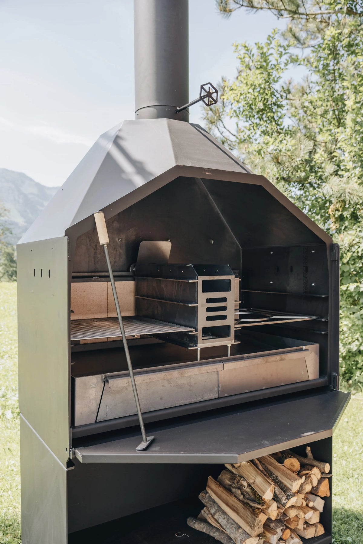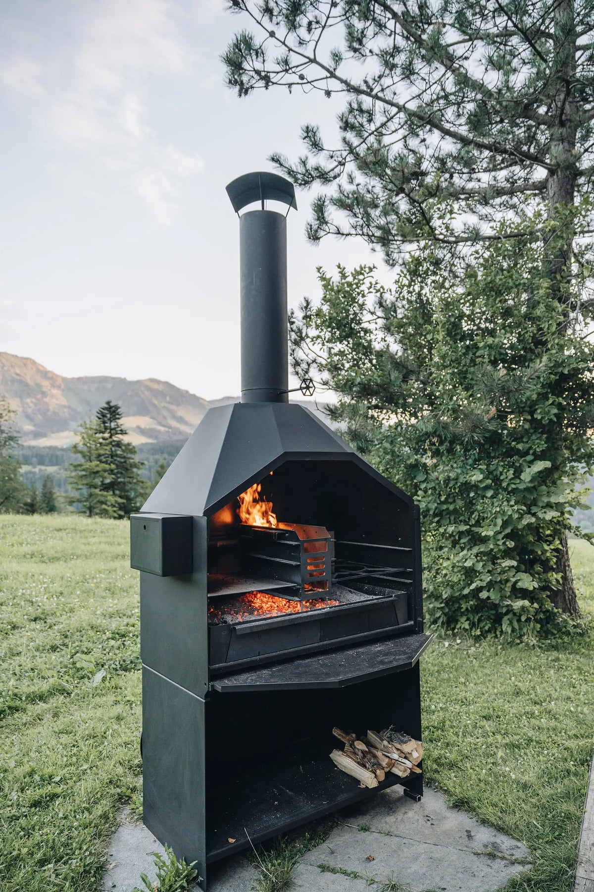 Stell dir einen Sommerabend vor: Das Feuer knistert im Feuerkorb, du schiebst die Glut an die Stellen, wo du sie brauchst. Auf dem Rost liegen Steaks und Gemüse. Im Warmhaltefach warten die ersten Stücke auf die zweite Runde. Und dank Wärmespeicher und Rauchklappe bekommst du nicht nur Hitze, sondern auch Aroma, das im Gedächtnis bleibt. Genau für diese Momente ist dieser Grill gebaut.