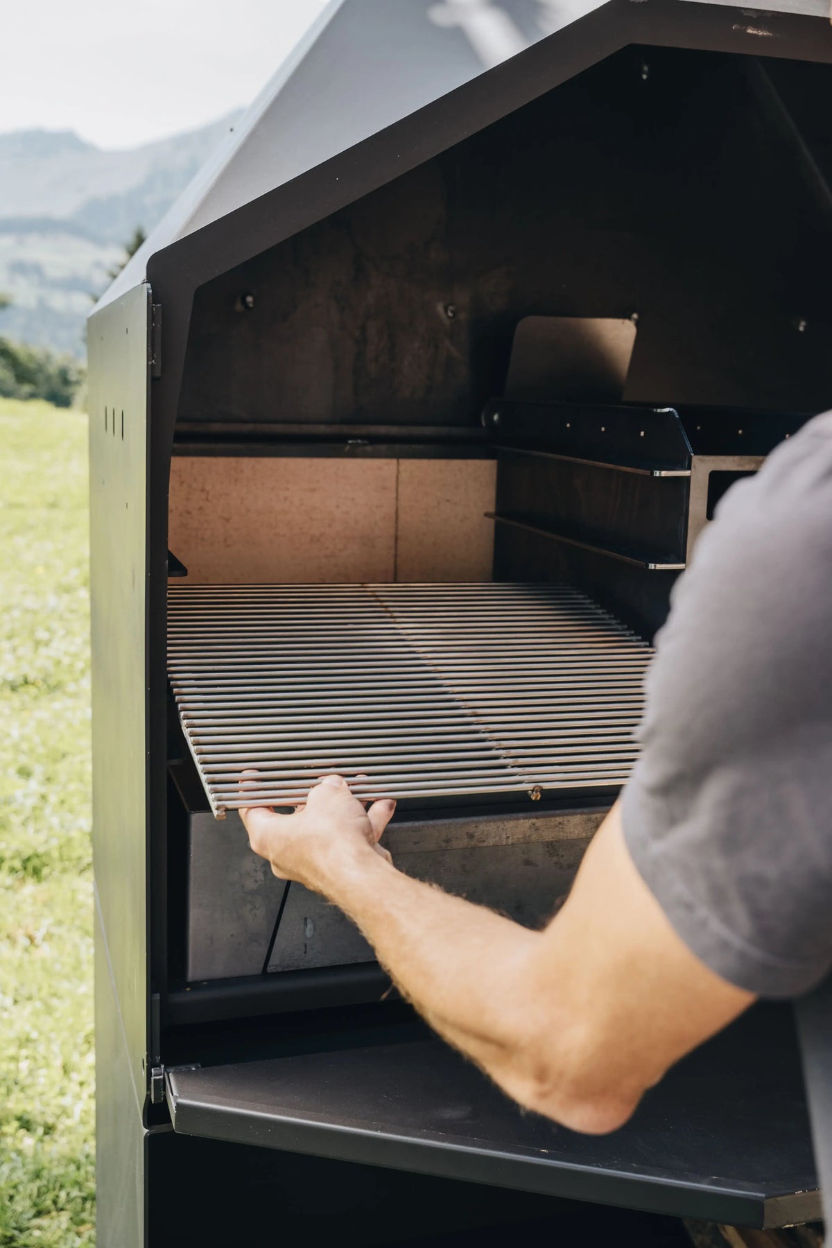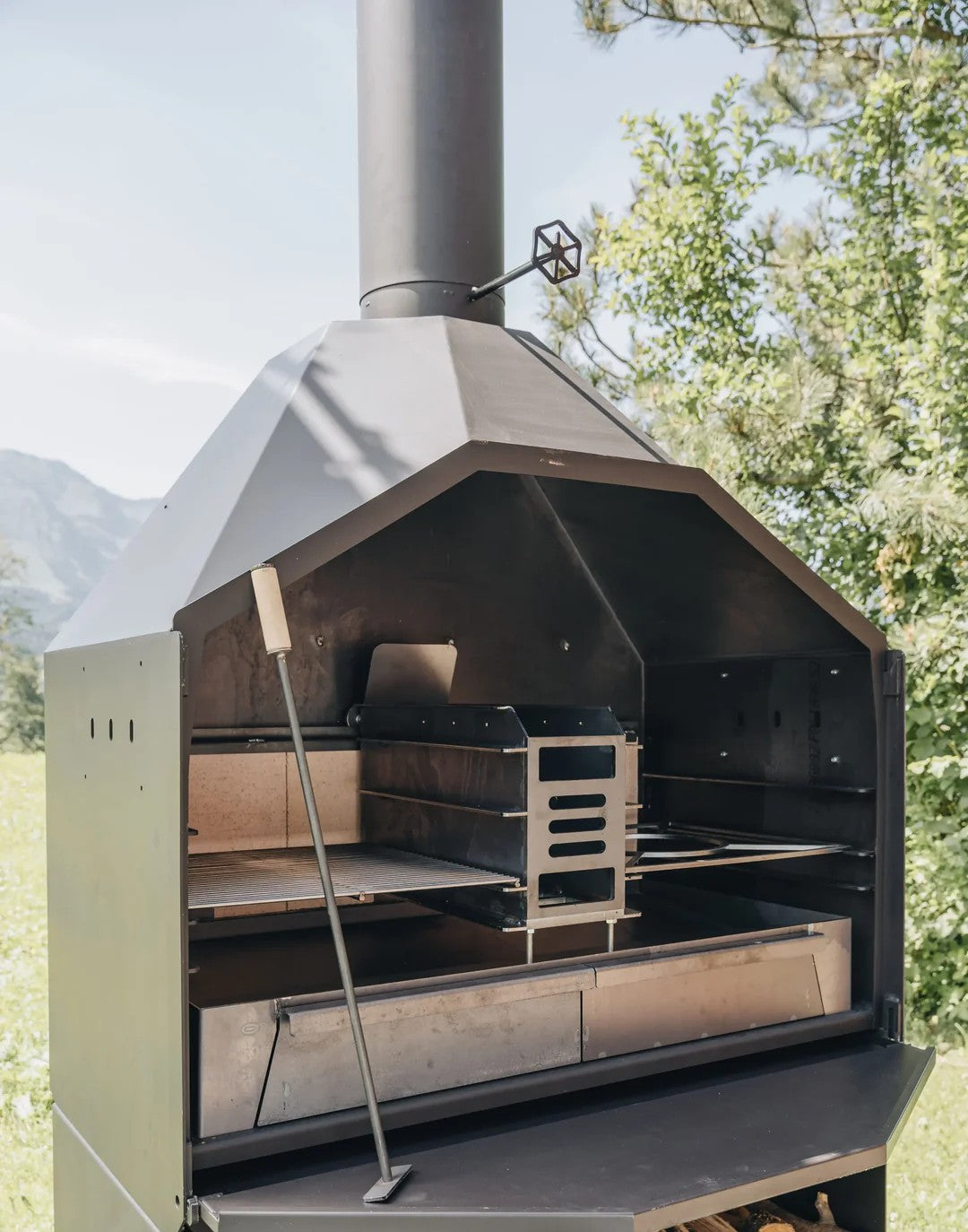 Mit dem mitgelieferten Wok- und Pfanneneinsatz holst du dir die Feuerküche ins Freie: Pfannengemüse, Eintöpfe oder Saucen gelingen direkt über der Glut. Die Warmhalte-Schubladen nutzt du, um Beilagen oder bereits fertiges Grillgut zwischenzuparken. Wenn du mehr Rauchgeschmack möchtest, schließt du die Rauchklappe, sodass der Rauch länger im Grill bleibt und dein Fleisch aromatisiert.
