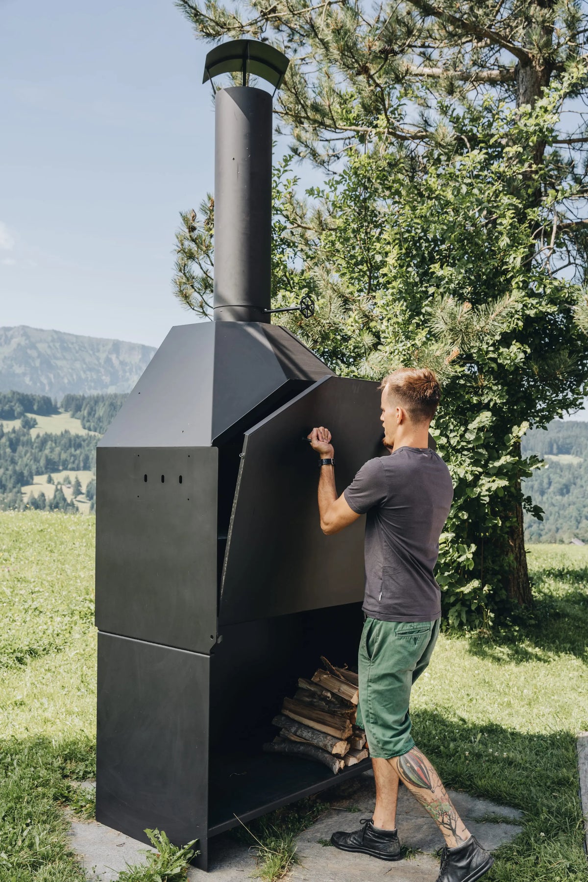 Im Grundset sind Wok- und Pfanneneinsatz, Grillrost und Schürhaken schon dabei. Du kannst also direkt loslegen: Steaks auf dem Rost, Gemüse im Wok, Pfannengerichte direkt über dem Feuer. Die Schamotteplatten an der Rückseite wirken als Wärmespeicher. Sie gleichen Temperaturschwankungen aus und sorgen dafür, dass dein Grillgut nicht dauernd zwischen „zu heiß“ und „zu kalt“ pendelt.