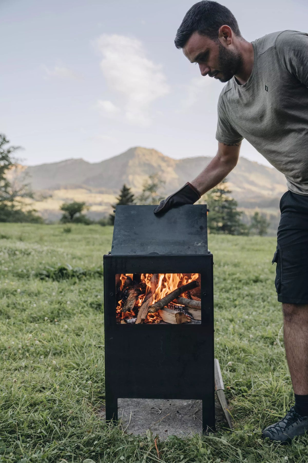 Keine Sorge, der Aufbau ist kinderleicht und schnell erledigt. Die Feuerbox wird als praktischer Bausatz geliefert und lässt sich in nur 10 bis 15 Minuten mühelos zusammenstecken. Kein kompliziertes Werkzeug nötig – einfach auspacken, aufbauen, und das Outdoor-Kochabenteuer kann beginnen. Das Anfeuern ist dank der guten Zugregulierung unkompliziert; du kannst Holz oder Holzkohle verwenden. Mit optionalem Zubehör wie dem Wok- und Pfanneneinsatz oder der Pizzabox erweiterst du die Funktionalität im Handumdrehen. Deiner Kreativität sind keine Grenzen gesetzt.