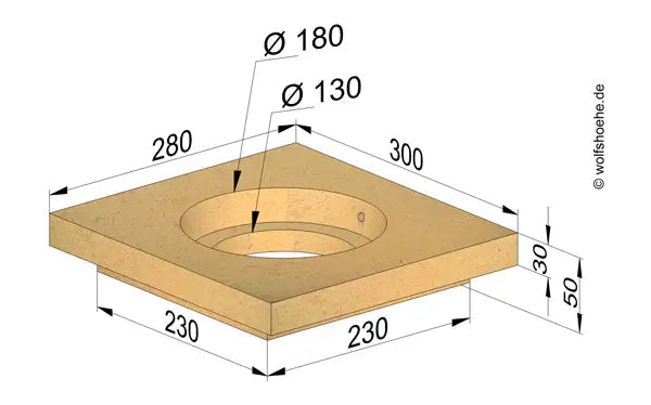 • Artikel 300157: Rauchrohraufnahme ø 180 mm, 300 × 280 × 70 mm