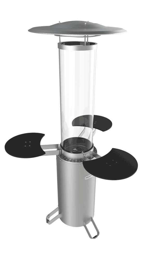 Befeuert wird der Strahler mit Holzpellets, einem CO₂-neutralen Brennstoff, der einfach in der Handhabung und sicher im Gebrauch ist.