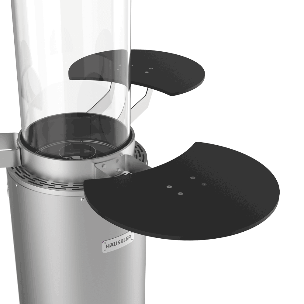 Bis zu drei Tische können am Strahler angebracht werden und verwandeln ihn in einen gemütlichen Treffpunkt. Perfekt, um sich anzulehnen, das Getränk abzustellen oder einfach die wohlige Wärme gemeinsam zu genießen.