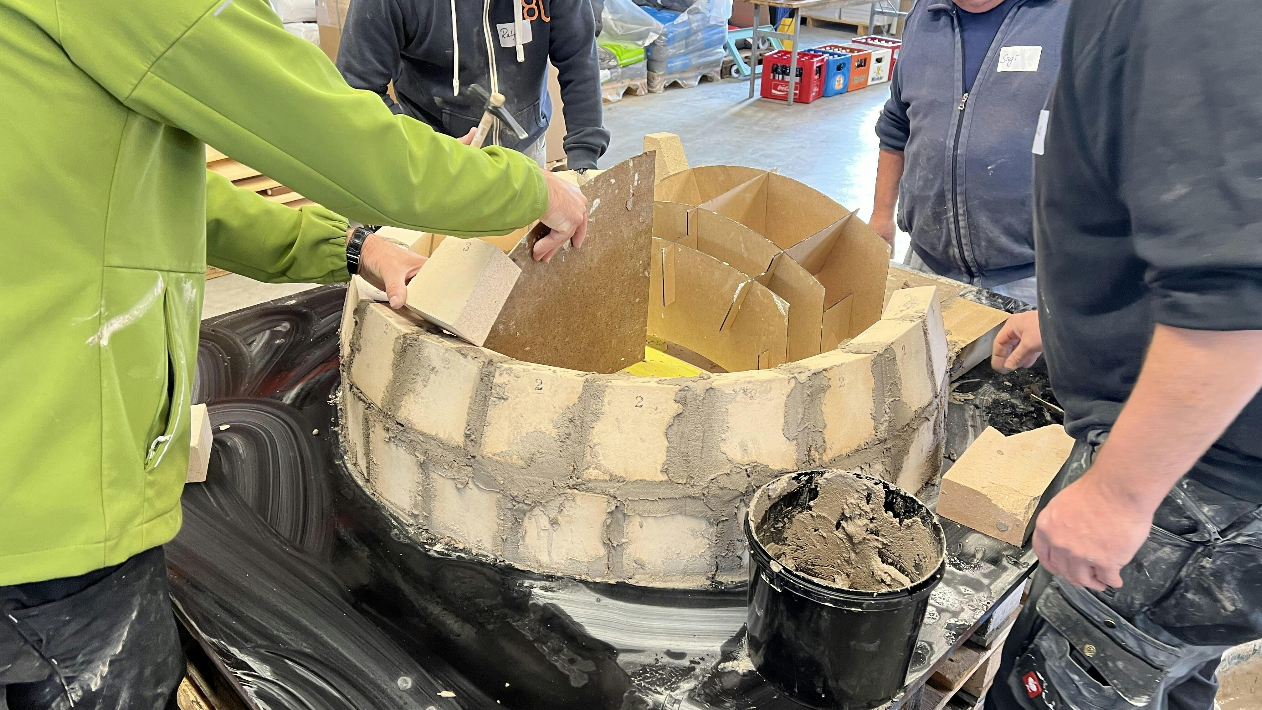 Um die vermittelten Inhalte zu verinnerlichen, dürfen die Teilnehmenden an unterschiedlichen Stationen wichtige Handgriffe erlernen und selbst ausprobieren. So kann vor Ort auch an verschiedenen Backofen-Gewölben eigenhändig gemauert werden.